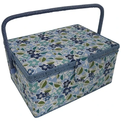 Kleiber Large Rectangular Sewing Basket Floral Print (Grey/Charcoal) with Whicker Handle