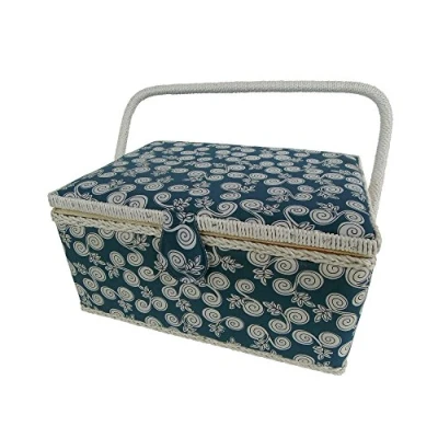 Colour: Blue with white leaves Dimensions: 32 x 24 x 16 cm High quality with fabric Aufgepolsterter body and interior Comes organisational Einsatz; Made of plastic and pin cushion Ideal for storing Nähartikel, knitwear and craft accessory