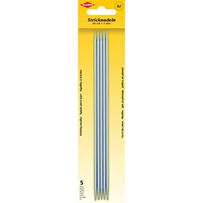 Set of 5 aluminium knitting needles for knitting stockings, hats and much more. This knitting needle set / needle set is suitable for all knitting projects that need to be put on round. Needle size: 3 mm Needle length: 20 cm