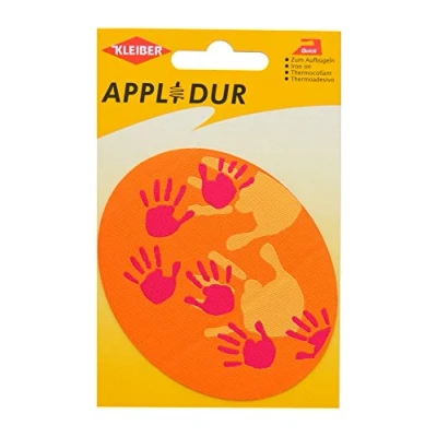 Oval Hand Prints Patch - 10cm x 8 cm - Orange For Bags, Rucksacks or Clothes Instructions Included Washable Easy to Use
