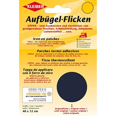 Kleiber Large Iron On Cotton Repair Patch 40cm x 12cm Navy/Dark Blue, 40 12 Centimeters