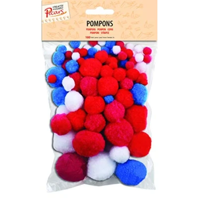 Colourful: pompoms in red, white, blue, berry, includes 3 glitter pompoms. Craft fun: versatile use (for crafting, decorating cards, gifts, etc.), soft and light texture of the pompoms Fuzzy: fluffy balls with plastic plush, ideal for creative crafts for home, school, nursery school Contents: 100 pieces Dimensions: diameter approx. 1.5 - 3.5 cm