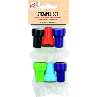 Creativity: stamp set, set of 6, stamps with different motifs and integrated stamp colour, 2 x star, rocket, UFO, monster, cat Craft fun: easy stamping for creative crafts Versatile: compact children's stamp for card making, embellishments, crafts at school, kindergarten, parties, home Contents: set of 6 Dimensions: approx. 3.5 cm x 2.2 cm