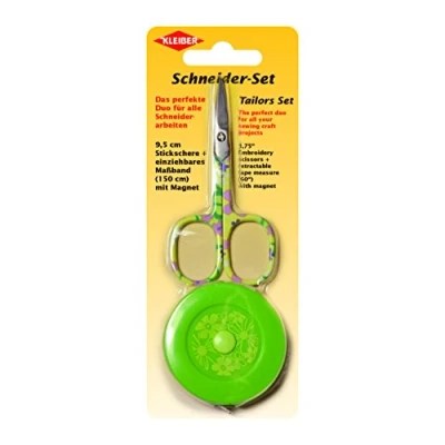 Kleiber Tailors Embroidery Set Including 3.75 inch Scissors and 60 Tape Measure with Magnet Green