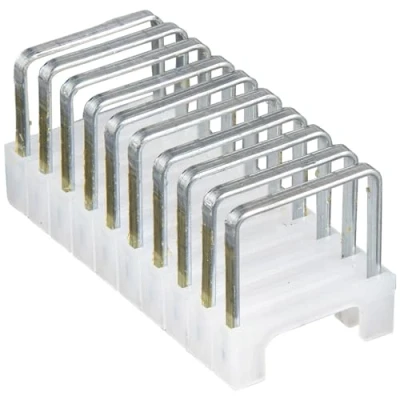 SECURE INSULATION: Heavy-duty staples ensure safe and secure insulation of various cables, including NM (Romex) cable gauges 14/2, 14/2G, 12/2, 12/2G, 10/2, and 10/2G VERSATILE APPLICATION: Staples designed to secure flat and round Voice, Data, Video, and NM (Romex) nonmetallic sheathed cable EXCLUSIVE COMPATIBILITY: Compatible with Klein Tools' Loose Cable Staplers (Cat. Nos. 450-01 and 450-100) for convenient and efficient stapling INSULATED DESIGN: UL listed insulated staples with plastic insulation provide protection for cables MADE IN USA: Staples are proudly made in the USA, ensuring high-quality craftsmanship ENHANCED HOLDING POWER: Special coating on staples increases their holding power for added security PACK OF 300: Each pack includes 300 staples, providing ample supply for cable installation projects