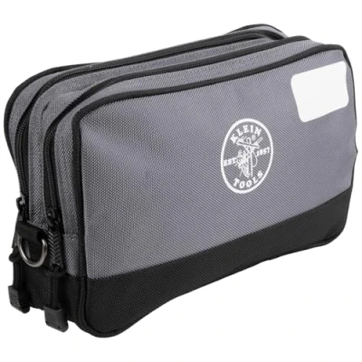 KLEIN Tools 55583 Tool Pouch Zipper Bag, Dual Compartments, 12 Inch x 7 Heavy Duty Bag Organizer, Multipurpose for to Crafts
