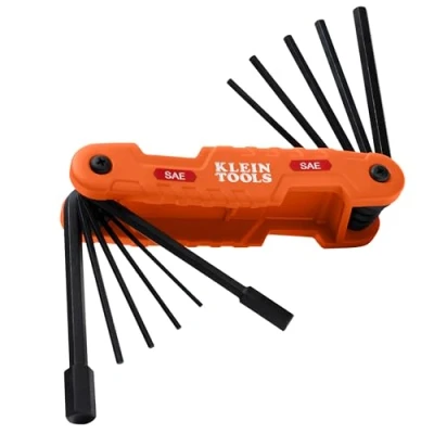 Klein Tools 70550 Hex Key Set, 11 SAE Sizes, Heavy Duty Folding Allen Wrench Tool with Extra Long Keys,Orange