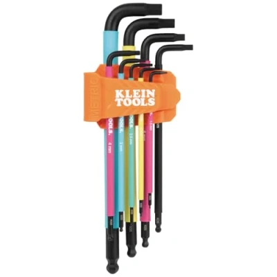 9 METRIC HEX SIZES: Extra-Long L-style key sizes 1.5 mm, 2 mm, 2.5 mm, 3 mm, 4 mm, 5 mm, 6 mm, 8 mm, 10 mm QUICK IDENTIFICATION: Color-coded sleeve for efficient size recognition EXTRA-LONG ARMS: 30-Percent longer arms for increased reach and leverage ENHANCED COMFORT: Plastic sleeves on round shanks increase comfort during extended use BALL-END: Hex keys designed for optimal performance at angles up to 25 degrees, Weight: 1.36 Pounds, Manufacturer: Klein Tools