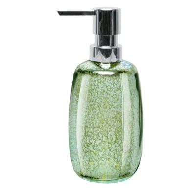 Elegant accessories made of green iridescent glass with silver and gold. Soap dispenser. Dimensions approx. 77 x 180 mm. Not dishwasher safe Series includes toothbrush cup, soap dispenser, soap dish and toilet brush holder.
