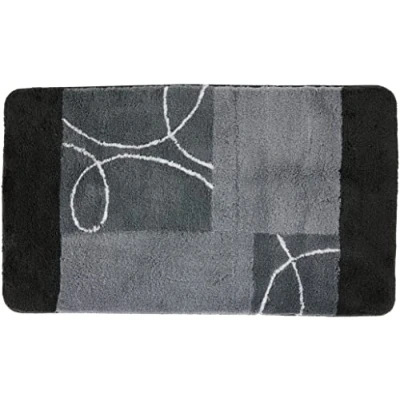 Rectangular bath mat in modern design, 20 mm pile height, wonderfully beautiful colour composition, full soft pile High-quality and visually very high quality 100% polyacrylic, non-slip coating Washable up to 40 °C Suitable for tumble drying and underfloor heating