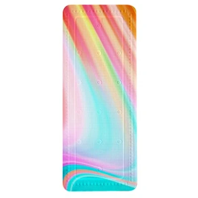 Colourful bath mat in pink, orange, yellow, green and blue. Ideal for large bathtubs 92cm x 36cm Made from durable PVC material. Easy to clean at 40 °C on a gentle cycle. Non-slip surface for added safety.