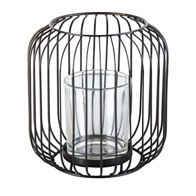 Beautiful lantern with filigree metal struts and glass insert Glass candle insert Low maintenance and easy to clean Dimensions: length 14.8 cm, width 14.8 cm, height 15.2 cm