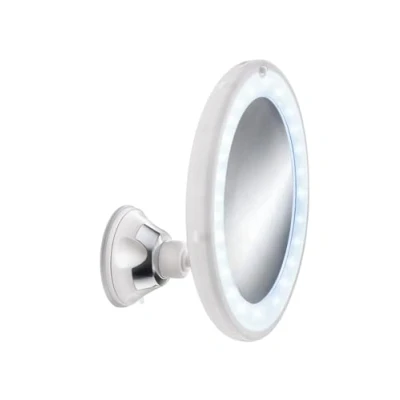 fexible due to ball-and-socket joint, power hold Plastic/glass Increased suction power due to rotation function 5x magnification, diameter 17,5 cm , 1,5 V batterie not included Diverse colours