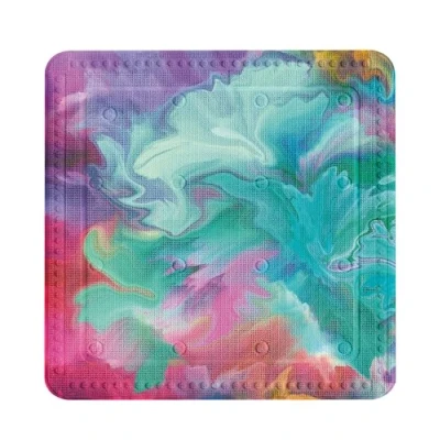 Colourful design in turquoise, green, purple, pink and red. Ideal for small showers: 55cm x 55cm Made from durable PVC material. Easy to clean on a gentle cycle at 40°C. Non-slip surface for added safety.