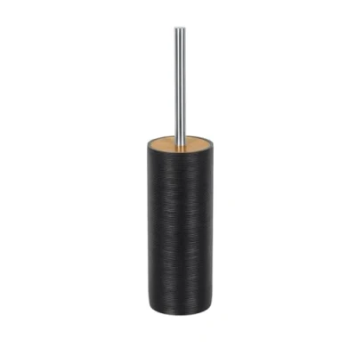 Grip Toilet Brush Holder in an elegant design, black Size approximately 90 x 400 mm Made from: Polyresin + bamboo unusual design with material mix Series includes soap dish, toothbrush cup, soap dispenser and toilet brush holder