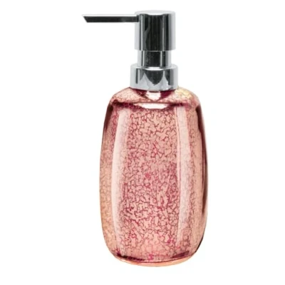 AmazonElegantMercury soap dispenser with coral shimmering glass with silver and gold accents Dimensions: approx. 77 x 180 mm Material: glass Series comprises toothbrush holder, soap dispenser, soap dish and toilet brush holder Available in other colours
