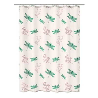 Textile shower curtain "Scarlett" with extravagant dragonfly motif in emerald colour Material: 100% polyester Includes high-strength plastic eyelets and lead-free weighted band in the hem Machine washable up to 40 °C Width: approx. 180 x height 200 cm