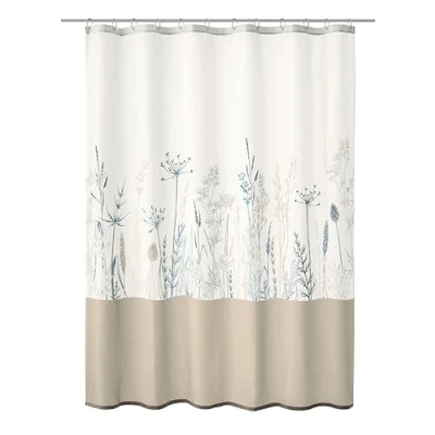 Textile shower curtain with filigree grasses 100% polyester Water resistant Particularly durable and easy-care material Includes high-strength plastic eyelets and lead-free weighted band in the hem