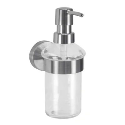 Elegant soap dispenser made of clear glass and stainless steel Space-saving and visually attractive to attach to the wall Capacity: approx. 170 ml Suitable for universal ring for wall mounting Universal ring with patented holder available separately, Manufacturer: Kleine Wolke Textilgesellschaft