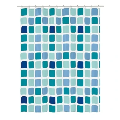Shower curtain in blue Made from 100% Peva, a PVC free material Environmentally friendly material Ready to hang with a reinforced perforated strip and sturdy eyelets Water proof shower curtain