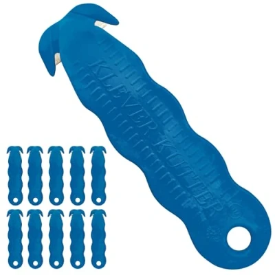 Metal Detectable Klever Kutter - specially designed for the food, pharmaceutical and chemical industries. Recessed Blade – the cutter safely shields the carbon steel blade from fingers reducing cut injuries and damaged goods Ideal Logistics Warehouse Tool – ideal for cutting boxes, film, tape, shrink wrap, and thousands more applications Small, Convenient and Durable– handle made from advanced plastic polymers. Handle includes a hole for fastening a lanyard or hanging for safe keeping Unique Dual Hook Design – blade lasts twice-as-long as single blade cutters, Manufacturer: Klever