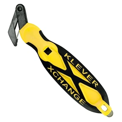 Recessed blade reduces cut injuries and damaged goods. Cuts boxes, film, tape, and thousands more applications. Ergonomic ‘Soft Touch’ handle reduces hand fatigue and stress. Innovative Metal Tape Splitter, Manufacturer: Klever Innovations