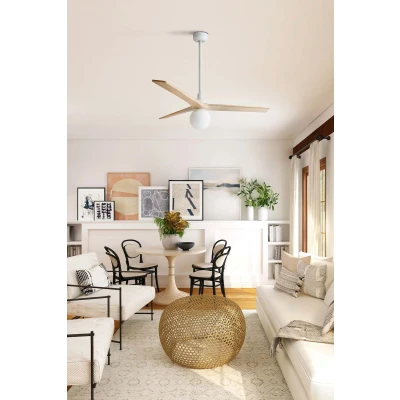 Klim Medium 3 Blade Ceiling Fan Matt White, Pine with Light 1x E27 Tuya Smart System