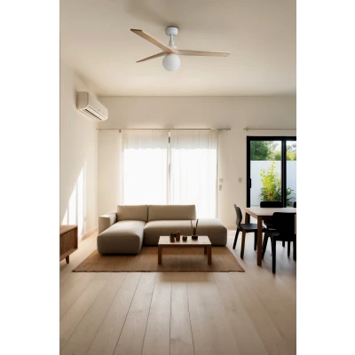 Klim Medium White, Light Oak Wood DC Ceiling Fan E27 6 Speed