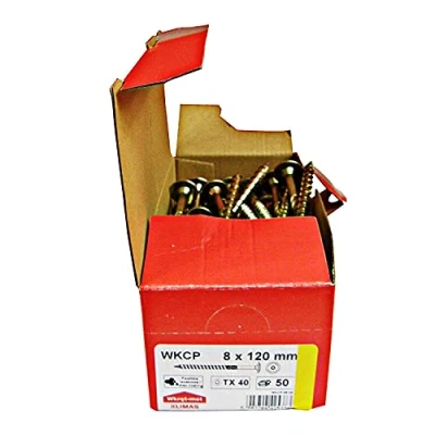 KLIMAS Flat Head Screws Wood Yellow 8 x 120 mm Pack of 50