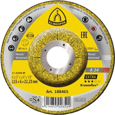 Durable and robust Field of application: universal metals Universal applicability: this grinding disc is versatile and allows one to work on all metals. It is suitable for surface processing, edge breaking and removing burrs, Weight: 1.10231131 Pounds, Manufacturer: Klingspor