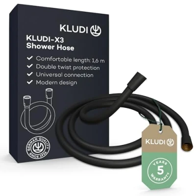 Double twist protection: prevents annoying twisting of the hose. Easy to clean: the smooth and kink-resistant plastic surface can be easily removed from limescale and dirt. Easy installation and universal use: the hose comes with 2 pre-assembled sealing rings. Thanks to the standard G1/2 connection, the hose is compatible with all standard connections and can be mounted without tools. Comfortable length: with a length of 1.60 m, the hose offers optimal comfort and freedom of movement in the shower. At the beginning, let hot water flow through once for 60 seconds so that the hose gains its flexibility. Double twist protection: prevents annoying twisting and kinking of the hose., Weight: 0.8598028218 Pounds, Manufacturer: KLUDI