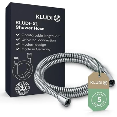 Kink and twist-proof: the plastic-coated shower hose with metal effect is made in Germany and has a kink protection as well as a twist protection, which prevents twisting of the hose. Universal use: thanks to the standard G1/2 connection, the hose is compatible with all standard connections. Easy installation: the hose comes with 2 pre-assembled sealing rings and is assembled without tools. Extra space: the 2 m long hose offers great flexibility. It allows for comfortable showering in the bath, even with deeply mounted taps. Attractive design and durability: modern design fits in any bathroom. Our voluntary manufacturer warranty of five years meets our high quality standards - significantly longer than required by law., Weight: 0.7054792384 pounds, Manufacturer: KLUDI
