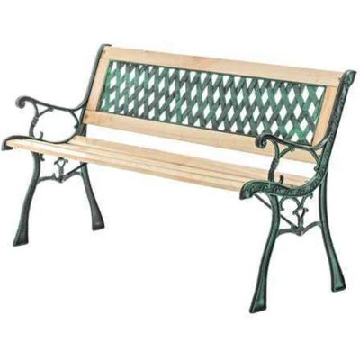 GENERAL DESCRIPTION This product features a lattice design with a solid build. It has a cast iron verdigris finish frame, cast iron legs, and a cast iron effect plastic back. The seat is made of hardwood slats. TECHNICAL SPECIFICATIONS Size: 122cm (W) x 74cm (H) x 56cm (D) Back support: Wooden back support with cast iron effect plastic back Armrest: Cast iron armrest x 2 Leg: Cast iron leg x 2 Seat: 3 seater, wooden seat panel x 4 Carton Size: 125cm x 58cm x 8cm Weight: N.W. 14kg, G.W. 15kg