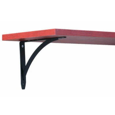 Add a decorative touch to your home with these Elegante shelf bracket This design incorporates a beautiful arching support brace with a steel base Features an elegant arch design and supports shelves 8" to 12" deep Durable black powder coat finish Holds 100 lbs./pair when mounted into studs Dimensions: .75” W x 5.25” H x 6.675” D