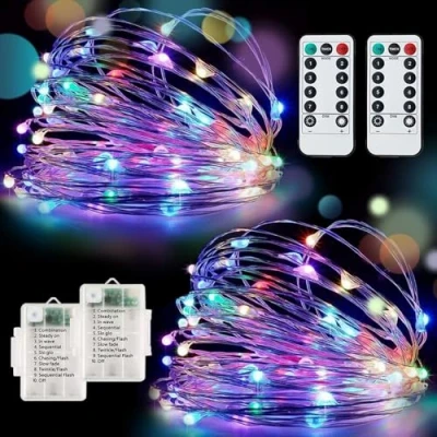 Knayis Fairy Lights Battery, 120LED 2 Pack 12M/40FT Waterproof, 8 Modes Copper Wire String Battery Operated for Indoor/Outdoor Bedroom Wedding Party Christmas Decor(Multi coloured)