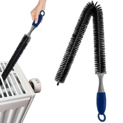 [Efficient Design]: Flexible 75cm long brush easily reaches tight and inaccessible spaces like radiators, dryer vents, and behind appliances. [Durable Material]: High-quality nylon bristles and a sturdy plastic handle ensure long-lasting performance and effective cleaning. [Easy Maintenance]: Washable bristles and a built-in hanging hole make cleaning and storage hassle-free. [Scratch-Free Cleaning]: Rubber-coated wire and tip protect surfaces from scratches while thoroughly removing dirt and lint. [Multi-Purpose Use]: Ideal for cleaning radiators, dryers, air vents, under furniture, refrigerator coils, and more.