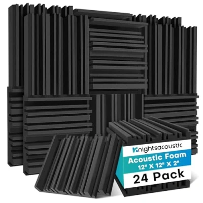 Knightsacoustic 24 Pack Acoustic Foam Panels, Sound Proofing Panels 2" X 12" 12", Broadband Proof for Absorbing, Recording Studio Wall Offices Home YouTube Room