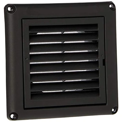 AmazonNon-corrosive light, rigid PVC construction for simple and quick installation Louvered vent, round exhaust with integral fly screen to keep out insects Suitable for venting through internal and external walls and doors Height 152mm, Recessed Depth 48mm, Width 152mm Black, Manufacturer: MLA