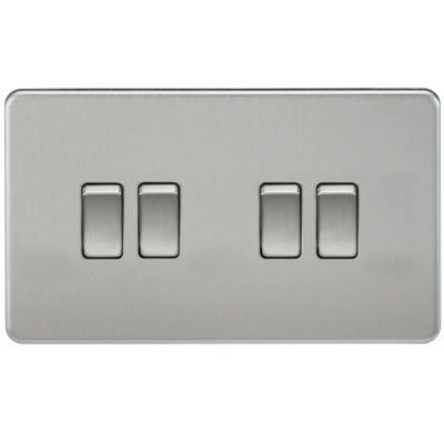 KnightsBridge 10A 4G 2 Way 230V Screwless Brushed Chrome Electric Wall Plate Switch