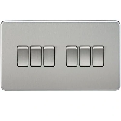 KnightsBridge 10A 6G 2 Way 230V Screwless Brushed Chrome Electric Wall Plate Switch