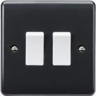 10AX 2G 2-way plate switch [Part M Compliant]The Curved Edge range has been expanded to include a range of wiring accessories that comply with current Building Regulations Part M. It is recommended that switches contrast with the front plate which in turn contrast with the wall. This range satisfies both recommendations. With a Light Reflectance Value (LRV) of approx. 8.9 (Part M recommends a contrast of 30% LRF between front plate and wall) Benefits Inherent Anti-microbial properties €“ 3rd party tested Certified to all relevant British Safety standards Features 10AX rated 2G 2-way Technical Specification:Height: 86Width: 86Projection: 7Min. Mounting Box Depth: 16mmConstruction: Thermoset resinFinish: AnthraciteIP Rating: IP20Primary Voltage: 230V 50HzPositions: 2GPlate Size: SingleSocket/Spur Control: SwitchedSwitch Type: Single PoleSwitch Function: 2-WayLoad/Max. Load: 10AXTerminal Capacity: 2 x 1.0mm² or 2 x 1.5mm²Dimensions: Height: 86mmWeight: 0.072KgWarranty: 25 Years