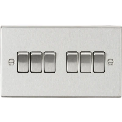KnightsBridge 10AX 6G 2 Way Plate Switch Square Edge Brushed Chrome