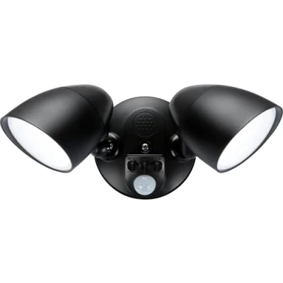 The latest in security floodlight technology, featuring user definable white light (3000K, 4000K, 5500K) by means of a selection switch. Fully featured built-in PIR with combined lux sensor providing accurate presence detection which can be overridden by a quick switch toggle, forcing the light into an always on state, removing the need for complex multi-core cables and switching arrangements. - IP65 construction for permanent outdoor installation - 5-year warranty - Wide operating voltage range 100-277Vac - 2 and 3 head options available (20W & 30W) - High quality SMD2835 LEDs - Selectable 3000K, 4000K, 5500K white light - Manual override by toggling of power switch - Adjustable sensitivity, time and lux dials - Choice of black or white finish - Simple mounting bracket with push-to-fit assembly - 90° PIR detection range - 8 metre detection distance - 70° beam angle (from each head) - 360° lamp bracket rotation, 180° lamp head rotation, 270° lamp head tiltTechnical Specification:Projection: 173Tilt: 270Rotation: 360Construction: PolycarbonateFinish: BlackClass: IIIP Rating: IP65Primary Voltage: 110/230VDiffuser: OpalLamp Technology: SMD LEDLamp Included: YesDimmable: NoL70B50: 54000Energy Rating (Class) post 2021 SLR: EBeam Angle: 75CCT: 3000/4000/5500Light Colour: CCTLumens: 1810Lumens (Light Source only): 1810Wattage: 20Efficacy: 95.3CRI: >85Weight: 0.635KgWarranty: 5 Years