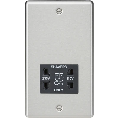 KnightsBridge 115 230V Dual Voltage Shaver Socket with Black Insert Rounded Edge Brushed Chrome