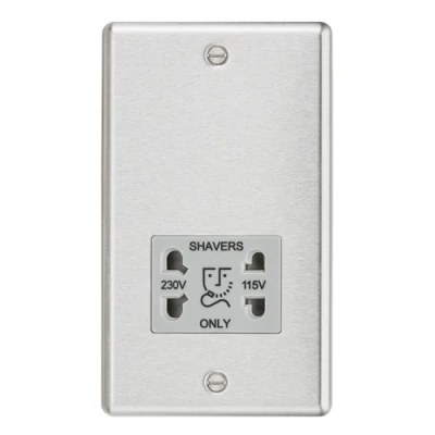 KnightsBridge 115 230V Dual Voltage Shaver Socket with Grey Insert Rounded Edge Brushed Chrome