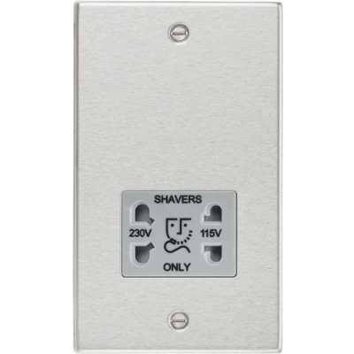 KnightsBridge 115/230V Dual Voltage Shaver Socket with Grey Insert Square Edge Brushed Chrome