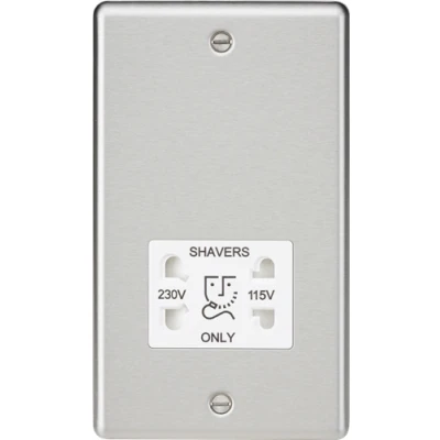 KnightsBridge 115 230V Dual Voltage Shaver Socket with White Insert Rounded Edge Brushed Chrome