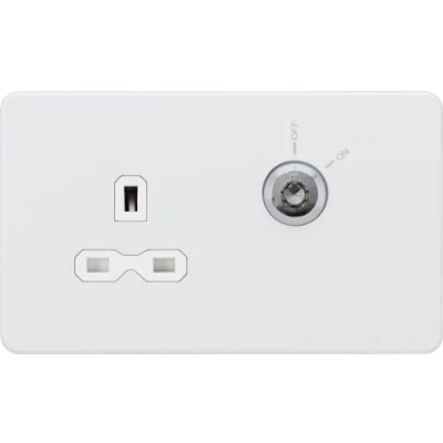 Electrical WorldLockable sockets are ideal for use in communal areas such as hotel and apartment corridors or areas where you need to restrict unsupervised usage. - 13A 230V - Double Pole - Key lock On or Off - Designed to restrict unauthorised useTechnical Specification:Projection: 4.3Recessed Depth: 38.2Min. Mounting Box Depth: 47mmConstruction: Premium grade steelFinish: Matt WhiteClass: IIP Rating: IP20Primary Voltage: 230V 50HzEarth Terminal: YesDimensions: Height: 88mmWeight: 0.316KgWarranty: 15 Years