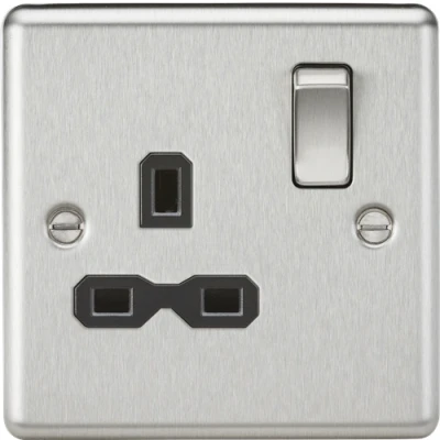 KnightsBridge 13A 1G DP Switched Socket with Black Insert Rounded Edge Brushed Chrome