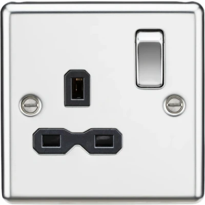 KnightsBridge 13A 1G DP Switched Socket with Black Insert Rounded Edge Polished Chrome